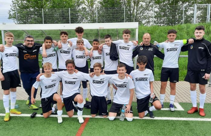 Hinten von links: Trainer Josip Condric, Benett Zimmermann, Roko Cotic, Hussein Hussein, Almin Dubinovic, Noah Bader, Tim Püschel, Noa Rozic, Felix Zehl, Luka Bebic, Luis Ott, Michel Betz, Adrian Harvardt, Ole Schneider, Kadri Neza, Aleksandar Ivis, Trainer Kay Möck