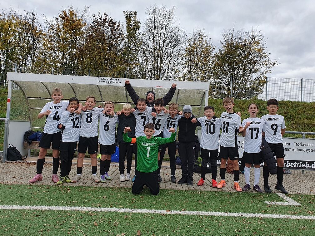 Zu schmeichelhaft war der 1:1-Pausenstand gegen stark aufspielende Rottenburger. Aber der Reihe nach. Nach gutem Start unseres Teams und der schnellen Führung durch Bajram in der 9. Minute nach schöner Kombination über die rechte Seite übernahmen die Gäste aus Rottenburg die Spielkontrolle und konnten durch einen satten Schuss aus 16 Metern bereits wenige Minuten später ausgleichen. Zwischen der 20. und 25. Minute musste unser Torwart Ivano mehrere Male sein Können unter Beweis stellen und entschärfte dabei beste Torchancen der Gäste. Mit 1:1 ging die SGM gut bedient in die Kabine. Unsere Trainer fanden dort ganz offensichtlich die richtigen Worte und mit Beginn der 2. Halbzeit hatte unsere gesamte Mannschaft und insbesondere unsere Mittelfeldspieler Maxim, Paul und Jona deutlich mehr Zugriff und wir gewannen in allen Mannschaftsteilen viel mehr Zweikämpfe. Nach einer Balleroberung setze sich Symeon klasse gegen seinen Gegenspieler durch und erzielte überlegt das 2:1 in der 35. Minute. 10 Minuten später erhöhte Samir nach Steilpass auf 3:1. Rottenburg kam auch mit zunehmender Härte nicht zurück ins Spiel. Im Gegenteil: Nach einem Foul im Mittelfeld gab es Freistoß für die SGM und Jona krönte eine tolle Kombination über Maxim und Paul mit dem 4:1. In der 28. Minute stellte wieder Jona mit einem feinen Heber über den heraustürmenden Gästetorhüter den vielumjubelten Endstand her. Kurz vor dem Abpfiff kamen die Gäste nach langer Zeit mal wieder zu einer Torchance, aber Ivano zeigte mit einem tollen Reflex noch einmal, dass er der Mann des Spiels war.