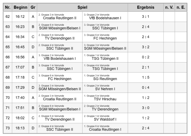 - die beiden besten Gruppendritten der Gruppen 3-6, ermittelt über Punkte > Tordifferenz > erzielte Tore > 10-Meterschießen