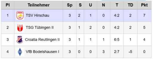 - die beiden Gruppendritten der Gruppen 1 und 2